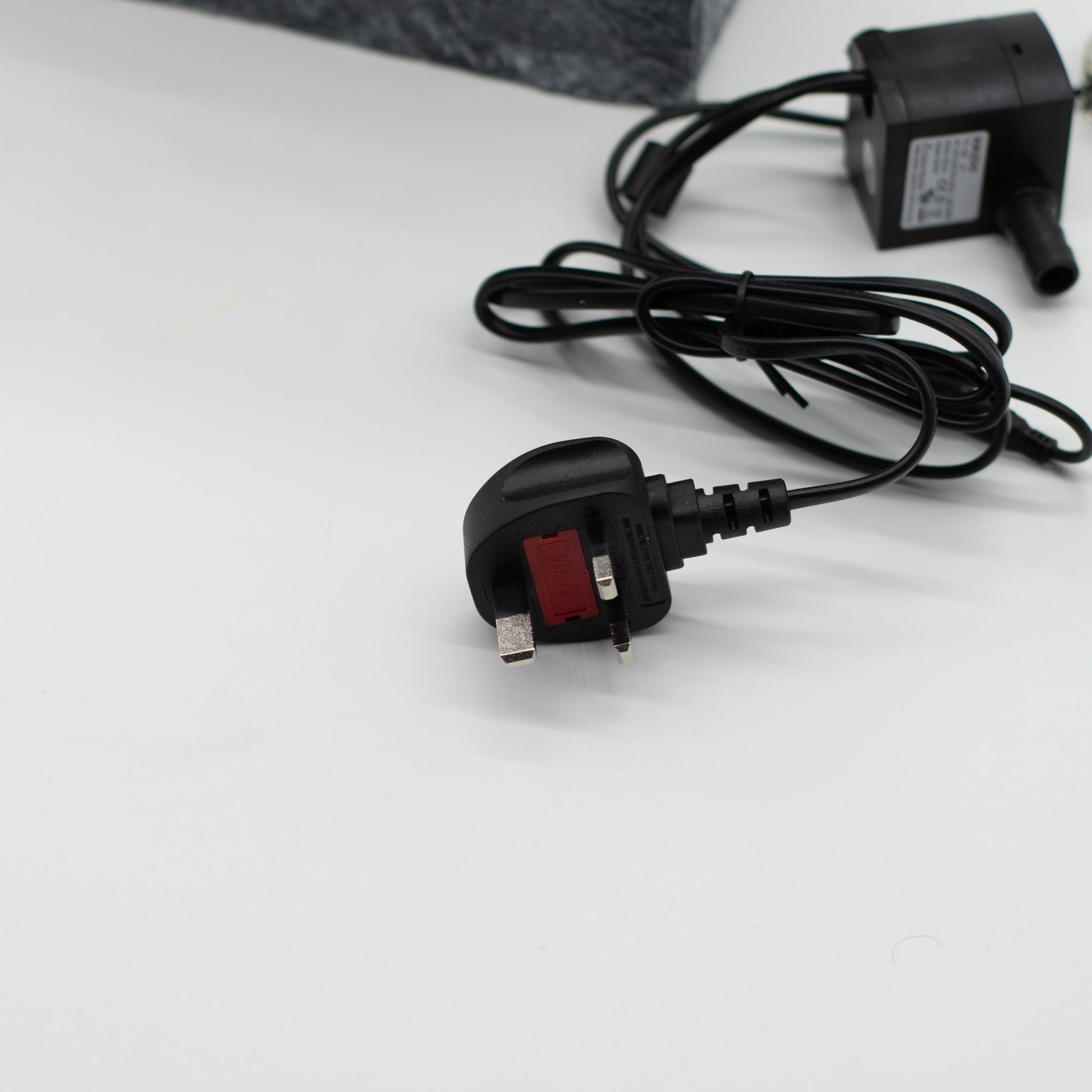 Water moves smoothly down the ribbed central column, echoing the lines of carved stone, before collecting in the base below. Set into the upper recess, the crystal ball becomes the visual centrepiece, illuminated with colour-changing LED light that reflects through the water and textured surfaces, adding depth and atmosphere as the colours shift.