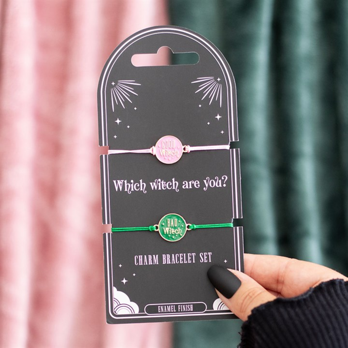 This set of two adjustable string bracelets features ‘Good Witch’ and ‘Bad Witch’ charms to suit your mood or to share with your coven.