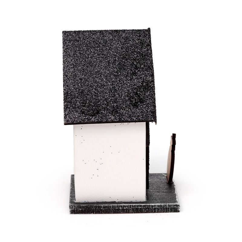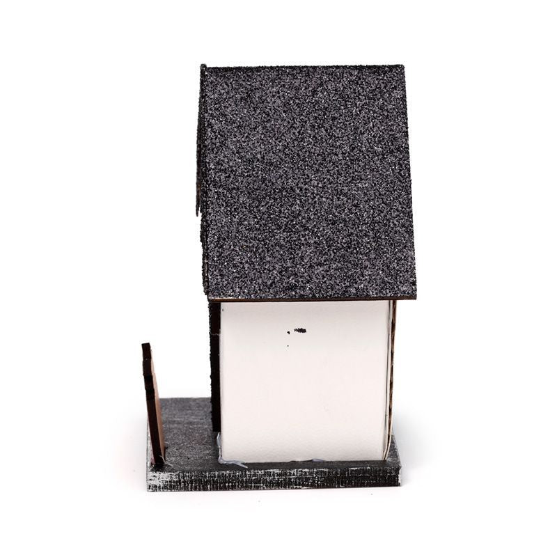Crafted from durable card and MDF, this house features intricate details, including a spider web and a menacing spider lurking inside.